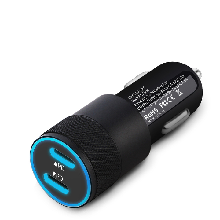 Usb-c车载充电器60w多端口PD3.0手机快速充电快速双2型C端口发光二极管快速充电适配器车载充电器